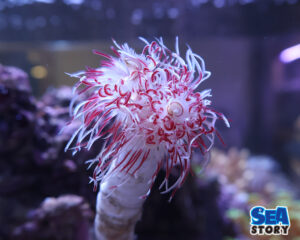 - 生体コメント:カンザシゴカイやココワームとも呼ばれる石のように硬い巣を作るゴカイの仲間で花のような鰓冠が美しく水槽のワンポイントとして人気があります。サンゴと思われがちですが照明不要で魚の餌のカスで生きられる丈夫で飼いやすい種類です。サンゴの毒に耐性があり触れていても問題ありませんがヤッコやチョウチョウウオは鰓冠を食べようとするため混泳できません。強い水流は嫌うため穏やかな場所への設置が推奨される初心者向けの無脊椎動物です。